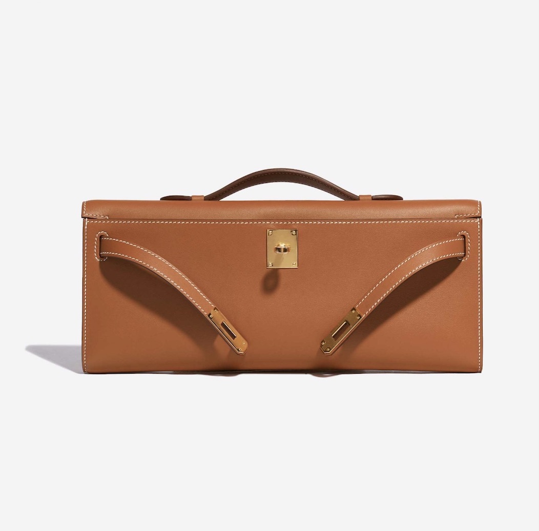 A Hermès Kelly Cut Clutch in gold hardware and swift leather / Photo via SacLab’s website
