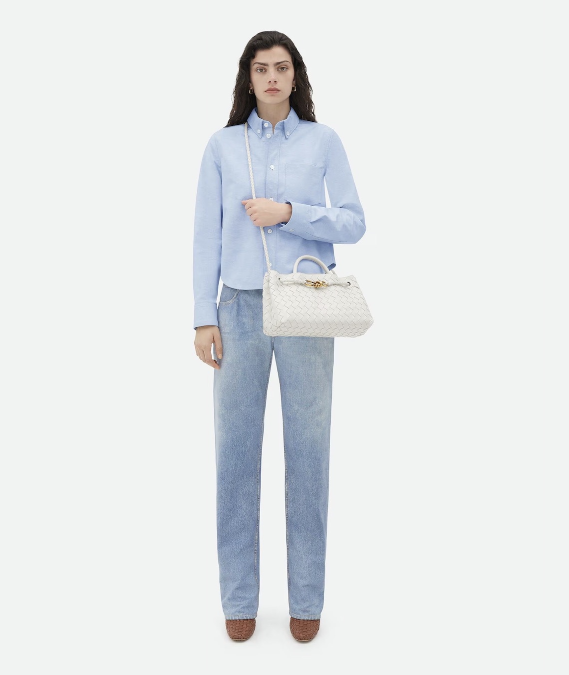 East-West Andiamo in white / Photo via Bottega Veneta’s website