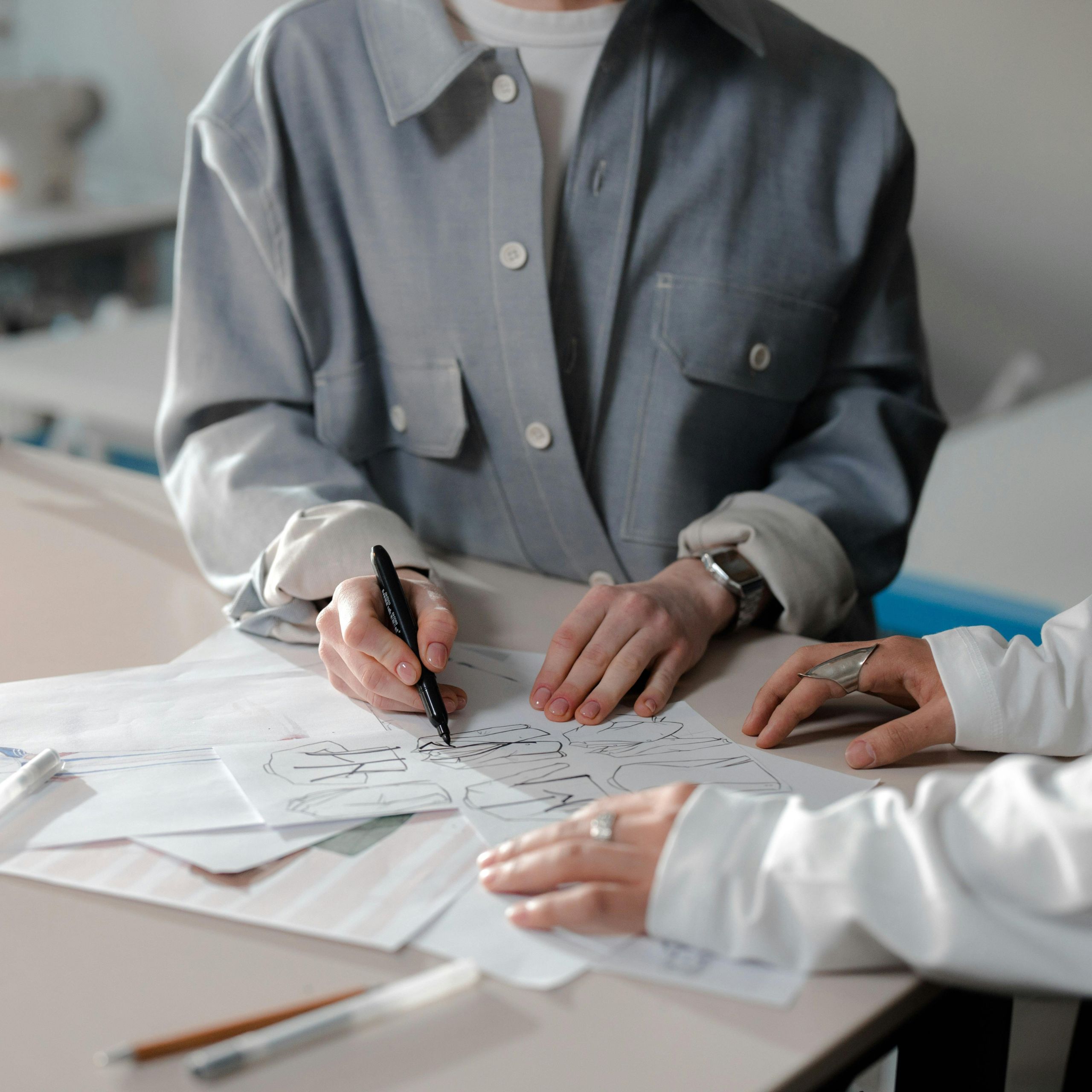 Inspired by the fashion house’s distinct style, Milan drew sketches of sneakers, a tracksuit, a dress, and high heels, already bearing the brand’s famous logo.