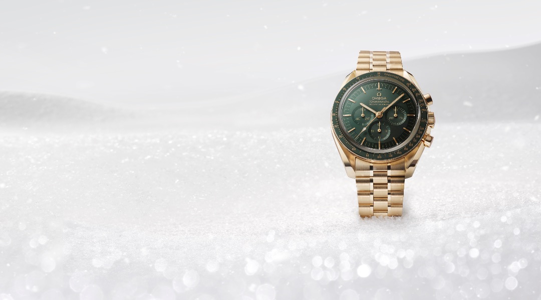 The 42 mm timepiece is made from OMEGA’s exclusive and trademarked 18k Moonshine Gold, which is inspired by the pale night sky moonlight. Complementing the alloy is a sun-brushed green PVD dial and a green ceramic bezel ring. On the inside is the Co-Axial Master Chronometer Calibre 3861, a direct descendant of the legendary Calibre 321 that has gone to the moon.