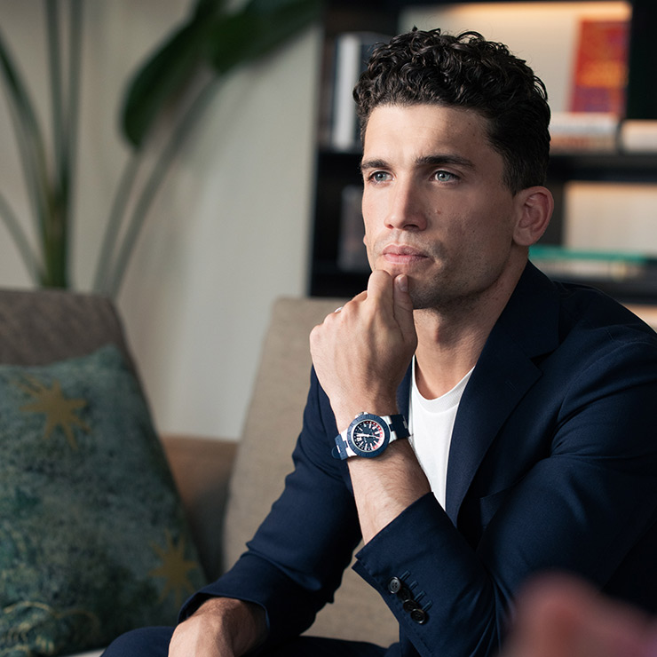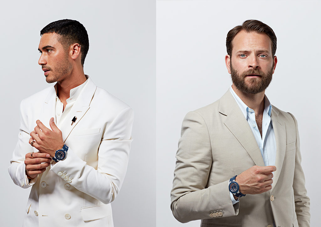 To introduce this new model, Bulgari shot several international celebrities with the Aluminum GMT, including Alejandro Speitzer, Alessandro Borghi, Alessio Lapice, Jaime Lorente, and Marreo Bocelli.