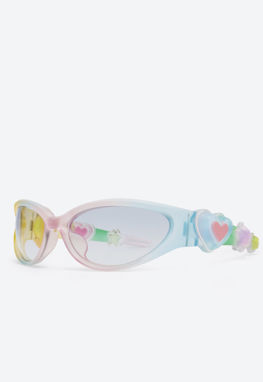 The Gentle Monster Gummy MG1 from the Gentle Jelly collection are sunglasses that personify the “baby girl” aesthetic. The round frame of the sunglasses is adorned with details reminiscent of jelly sweets and gummies we used to have when we were young. The lens is a rainbow gradient that will protect your eyes from the sun while looking playful and chic.