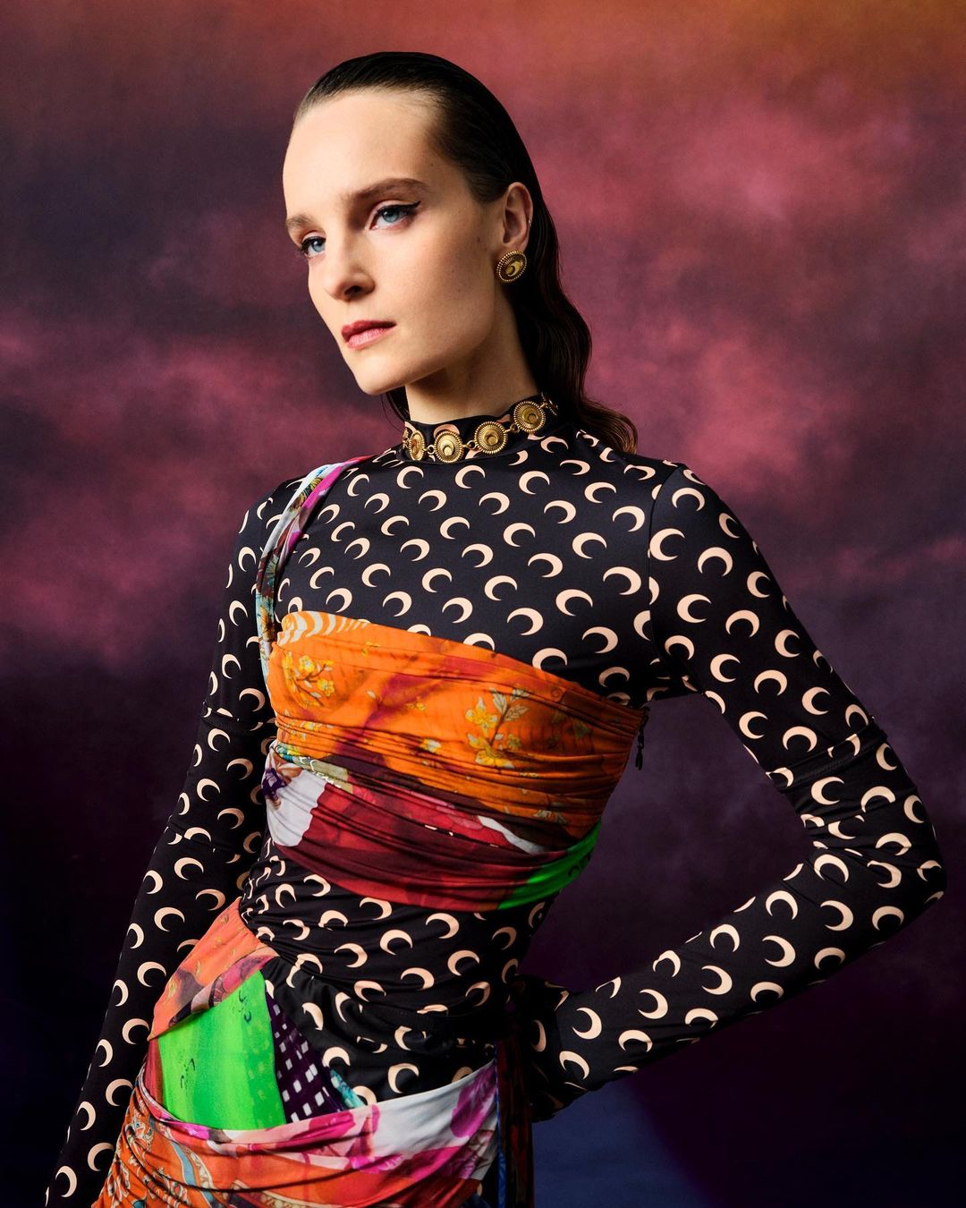 The eponymous brand Marine Serre is well-known for its crescent moon monogram. Celebrities like Beyoncè and K-Pop idol groups like BlackPink are wearing and performing with the brand’s signature print. The famous crescent moon is Marine Serre’s way of paying tribute to the victims of the 2015 and 2016 terrorist attacks in Paris and Brussels. She debuted the crescent moon monogram in her fifth-year graduate collection called “Radical Call for Love.”