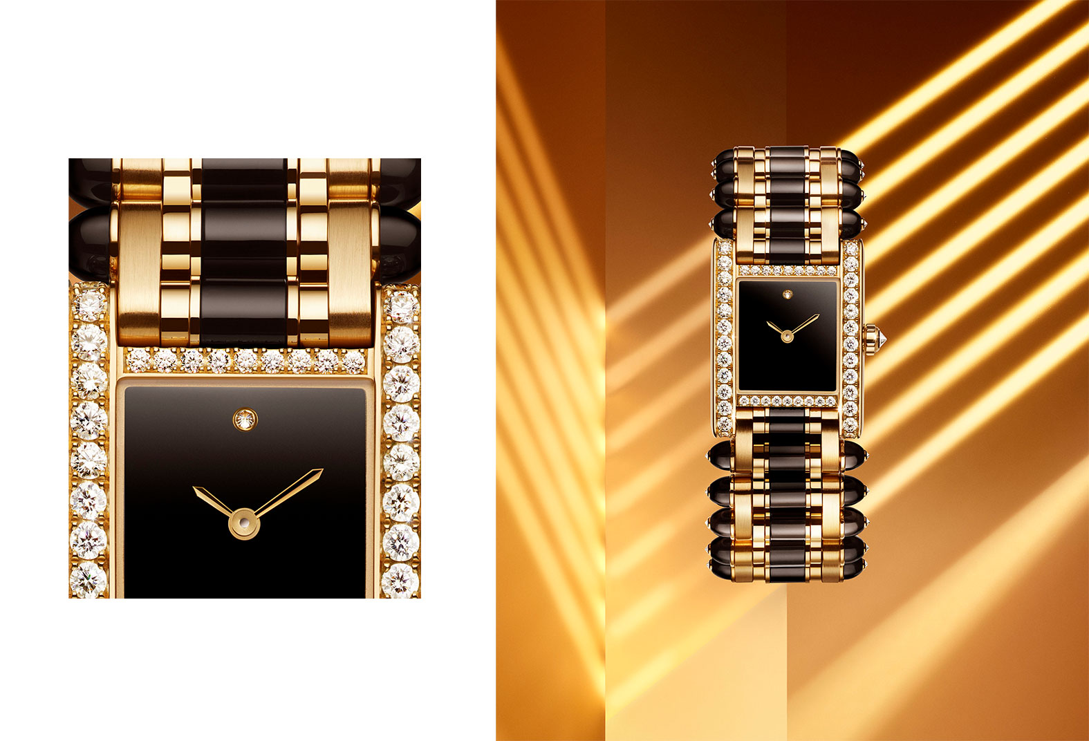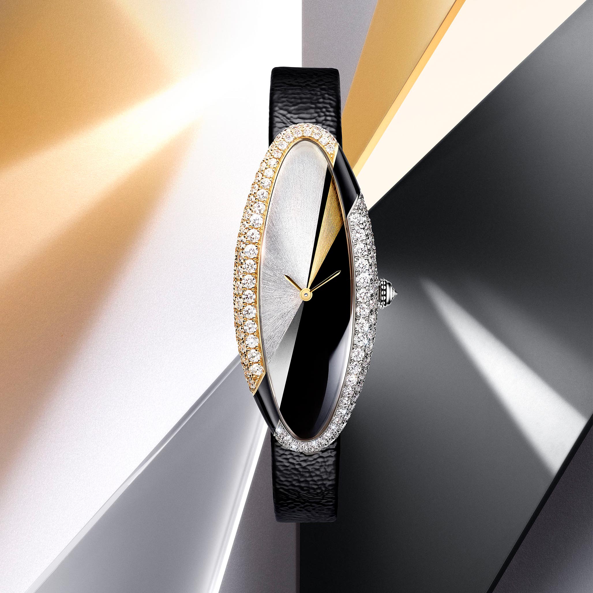 With the Baignoire, an elegant oval shape is one of its most distinctive features. The case is given a slender and elongated appearance, with the sides of the case being flat and straight, while the top and bottom are slightly curved—creating a beautiful and fluid shape that is both feminine and modern. Meanwhile, the Baignoire Allongée has an elongated oval shape and a more complex design, with stones of varying cuts on the case creating a vibrant and shifting appearance. The diamonds are set in a pavé style, which means that they are tightly packed together to create a shimmering surface that catches the light beautifully.