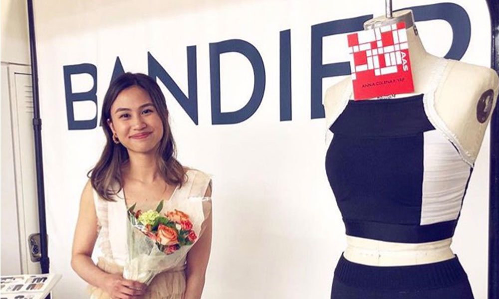Among her creations, Colene is most proud of a three-piece garment, a part of her “Following Maria” collection. The concept of the traditional Filipina inspired Colene to design style pieces that weave a contemporary take on it. The outfit consists of sleeves, a top, and a skirt in soft pink and coral hues adorned with intricate blooms. Though the outfit can be worn to formal affairs, it can also be taken apart and be paired with casual pieces. This execution together with merging different styles is Colene’s ideal piece. She adds, “What I knew, had a connection with, and couldn’t live without was activewear.” The young designer loves keeping in shape and is presently working as an Assistant Fashion Designer at Bandier, a stylish fitness emporium.