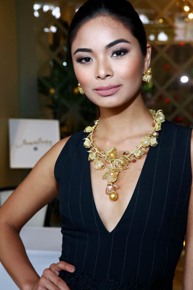 The highly textured and organic settings remained true to Wynn Wynn’s style where each piece was made with brilliant stones and Jewelmer’s signature South Sea pearls set in 18 and 24carat gold. Miss Universe Philippines Maxine Medina together with Marie Ann Umali and Fatimah Rabago modeled the pieces that reflect Philippine myths such as the Hanan necklace named after the Goddess of the Morning, the Haliya ring named after the Philippine goddess of the moon, the Alunsina cuff named after the virgin goddess of the Easter skies, the Kalawakan and Minaden earrings.