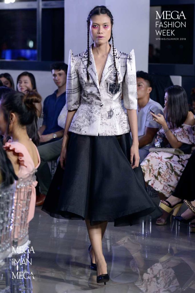 John Herrera’s new collection ‘Armada’ adopts the same techniques used in previous collection: bold prints, transparency, dimension, and rigidity. As described by the designer, ‘Armada’ focuses on the accidental discovery of the Philippines by the Spanish, effectively communicated by the giant map prints of the both the Philippine archipelago during those years.