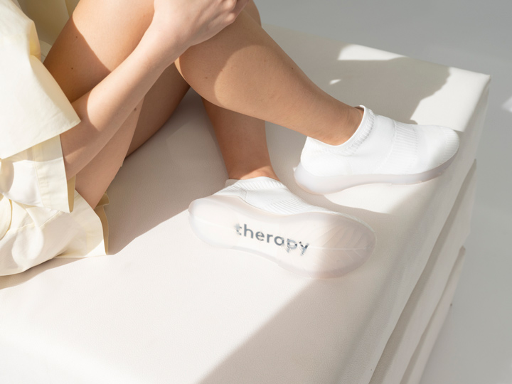 Lightness, breathability, and versatility are the key values of the Therapy shoes, which are available in black, dark green, white, and nude. It is meant to be comfortably worn from leisure activity to leisure activity throughout the day, with its insole made from double-layer Therapy Lite memory foam.