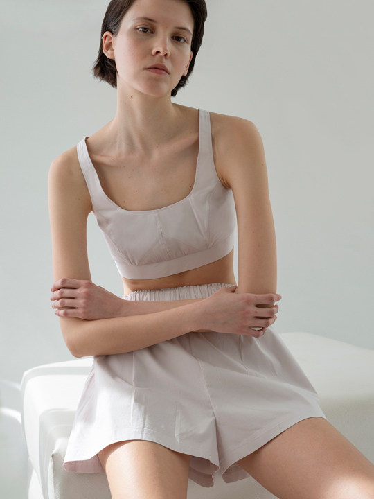 Made from crisp cotton poplin for a light but structured silhouette, the Crop Cuts Tank features a flattering scoop neckline and exposed cut details. This can be paired with either the Wide Poplin Shorts or a Poplin Kilt Skirt.