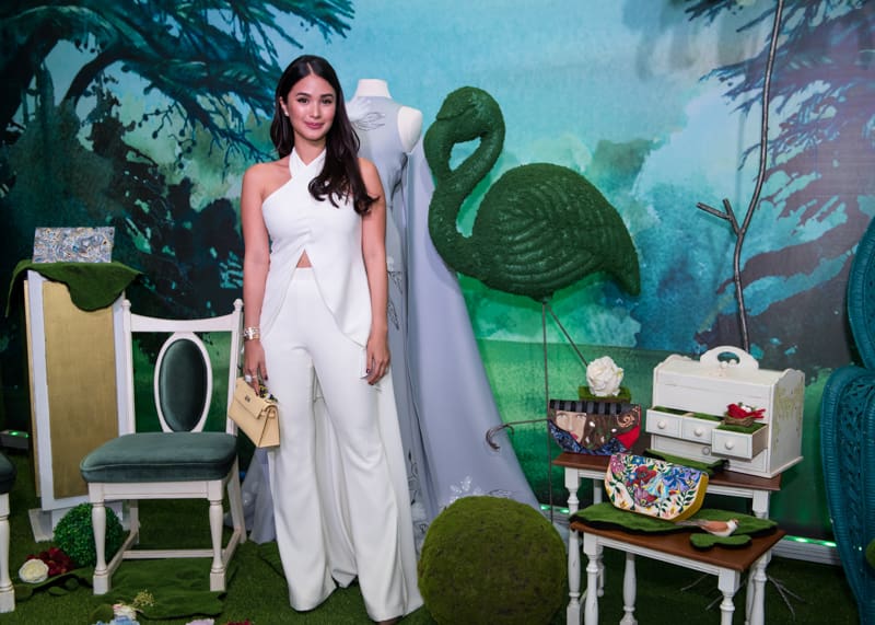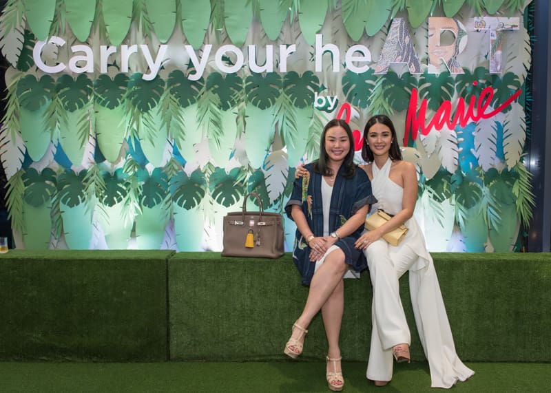 Actress Heart Evangelista recently showcased her exquisite creations of hand painted Hermes bags at the Volkswagen Showroom in Bonifacio Global City. Heart who uses her real name Love Marie Ongpauco Escudero as a painter, first surprised everyone when she held her first art exhibit at the Ayala Museum in 2014. Today, she has explored painting on luxury bags predominantly Hermes bags using symbols she adores most such as flowers, fish, birds and womanly figures. Some of those bags including Heart’s personal collection were part of her exhibit that also featured her paintings, and hand painted gowns, a collaboration with fashion designer Mark Bumgarner. Love Marie’s husband Senator Chiz Escudero along with her father Reynaldo and sister Camille were present at the event. Guests were treated to an unlimited supply of Moet & Chandon, Hennessy VSOP, Glenmorangie, and Terrazas as they partied the night away to the music of DJ Christina Bartges.