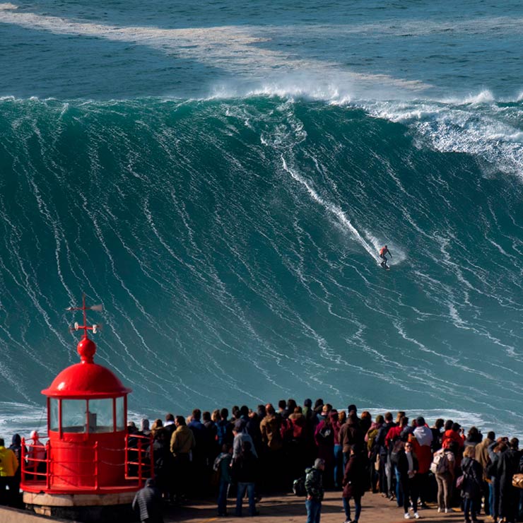 Some say that if a 30-meter wave is ever surfed, it will be at Nazaré. The intimidating power of these waves makes Nazaré a tow surfing spot, meaning that surfers are taken to the peak, launched and picked-up after the ride by jet-skis, which also keeps the surfers safe.