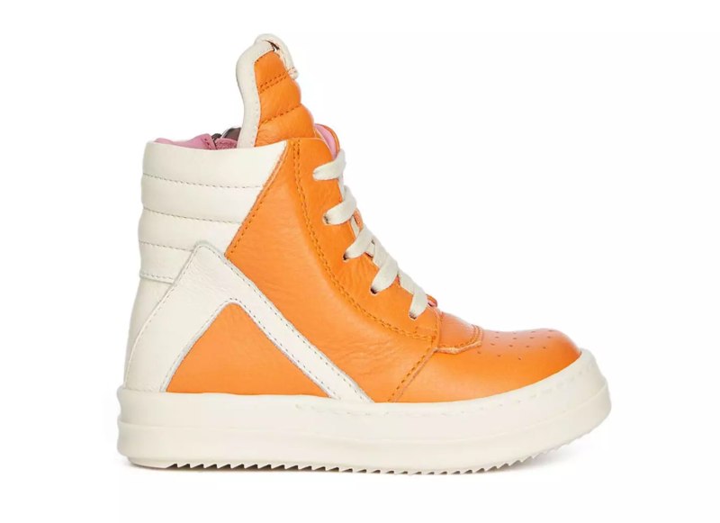 The range includes functional wear to keep kids warm in colder seasons, such as puffer vests and draped hoodies. In Owns’ signature black-and-white aesthetic, T-shirts, drop-crotch sweats, and socks also make up the line. However, a pop of color is seen in the two-tone sneakers shaded in cream and bright orange.