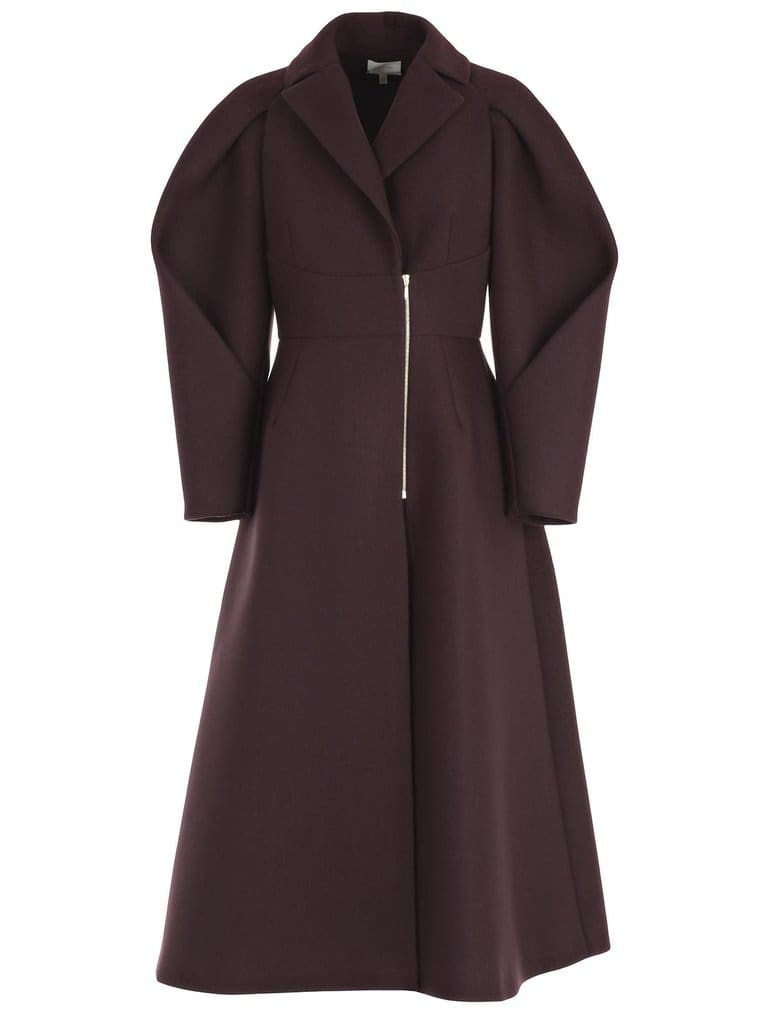 The beautiful deep mahogany coat with big, structured sleeves was paired with bright, cobalt blue pumps: a contrast just as proud as her husband’s current term (we couldn’t resist).