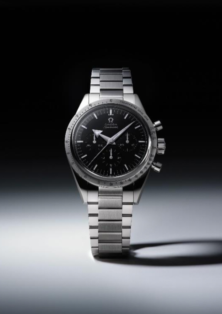 Taking inspiration from that first Speedmaster, this year’s release marks the collection’s 65th anniversary with a unique 38.6 mm case that has been crafted in 18K Canopus Gold. This exclusive material is Omega’s own white gold alloy and is distinguished by its high brilliance, whiteness and longevity.