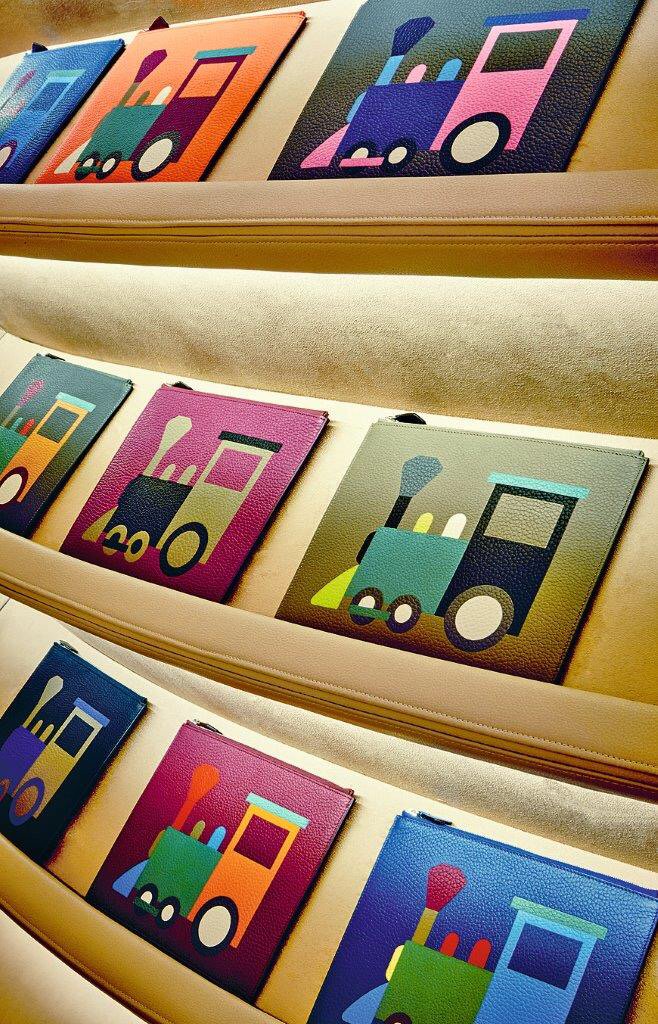 French luxury house Moynat collaborated with Williams in 2014 for a whimsical capsule collection inspired by trains. These colorful leather pouches are made by hand using resin, and they even came with an attachable rear train bag.