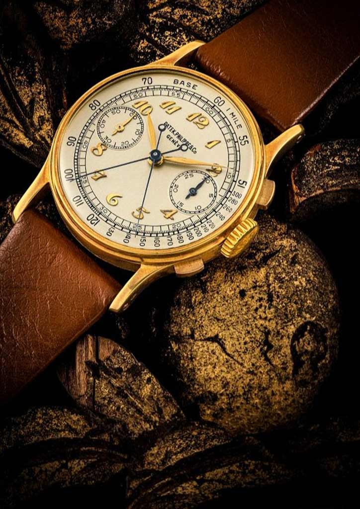 The first is a Patek Philippe split-second chronograph Ref. 1436 in 18K yellow gold from 1946, ordered by and sold to the late American banker Henry Graves Jr. It is estimated at $1.5 to 3 million.