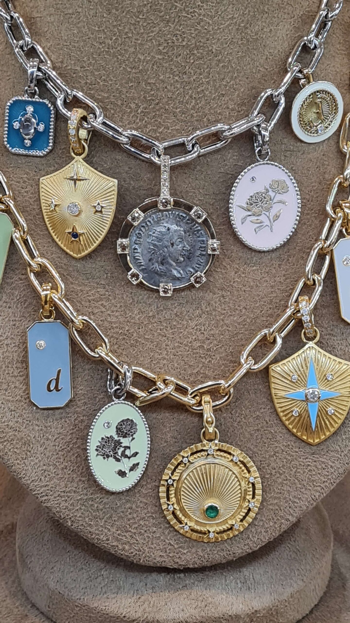 We can’t get over the stylish interpretations of Joier Janina by Janina Dizon. Witness as the she plays around with the contours of the alphabet to sculpt letters into diamond rings and gold pendants. Equally lovely are her enamel pendants and cuffs, decorated with letters or symbols of one’s choice. And given that it’s hard to choose just one amongst her stunning array of bespoke finery, one can also opt for a chunky chain necklace, decorating it with charms to tell one’s unique story.
