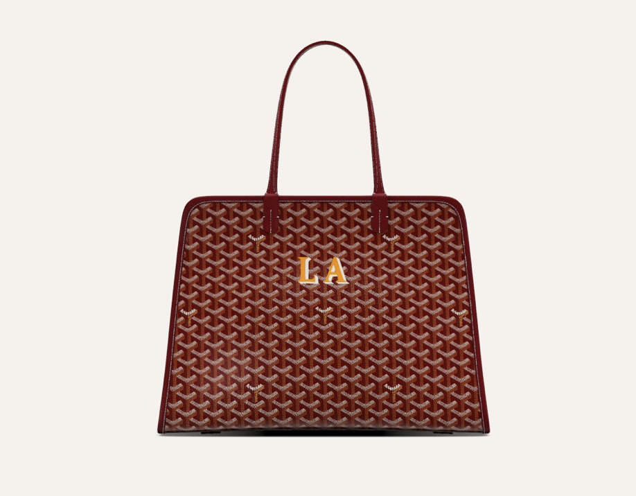 Not to be outdone, another French brand known for including initials amidst stylish tessellations of their iconic pattern is Goyard. Inspired by the tradition of his log-driving ancestors including initials onto the firewood they transported, founder François Goyard adapted this practice onto his brand. Today, clients can visit their boutiques to have everything from totes to card wallets painted by hand with their initials, and stripes of their own choosing.