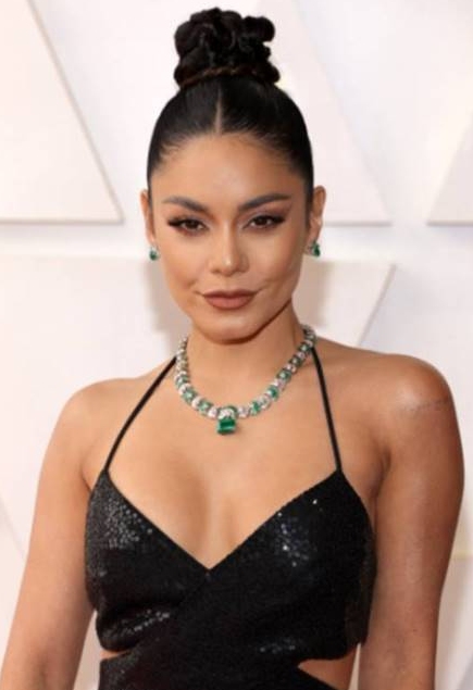 Hudgens amplifies the colored jewel trend by arriving in emerald pieces by Bulgari. The brand’s High Jewelry necklace, earrings, and ring stood out well while the actress wore a black form-hugging gown by Michael Kors.