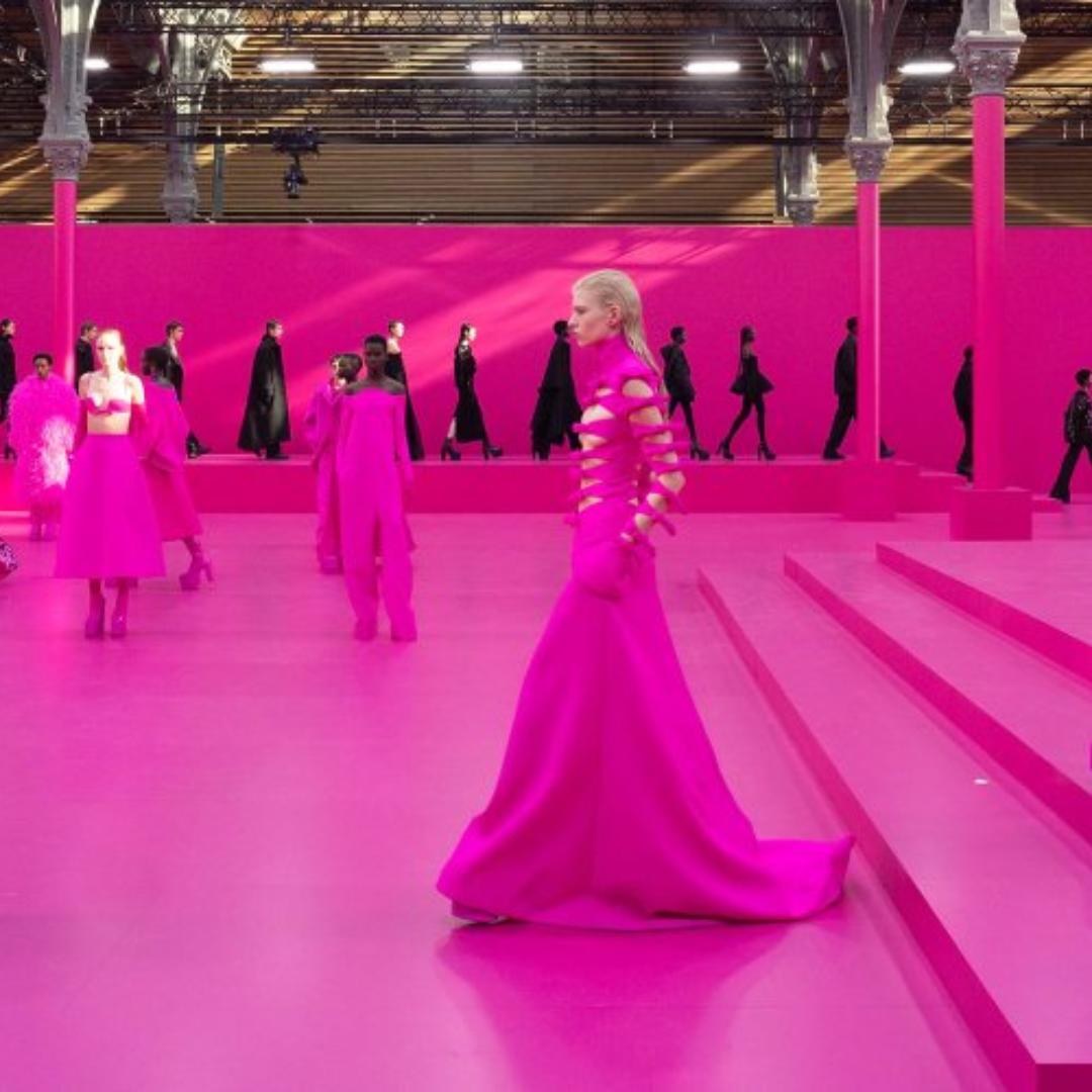 The color pink represents love, community, energy, freedom, individuality, curiosity, and invention, according to the Italian luxury fashion house. It explained that Piccioli had followed an “experimental urge” for a monochrome collection.