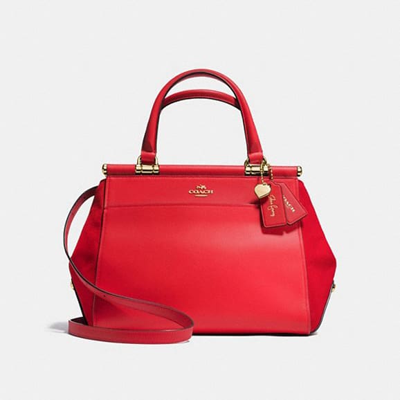 The Coach x Selena Gomez collection is available in Coach stores globally, and includes the Selena Grace bag, available in three exclusive colors: Selena Black Cherry, Selena White, and Selena Red. The collection also includes bag charms, wallets, and the Selena Wristlet.