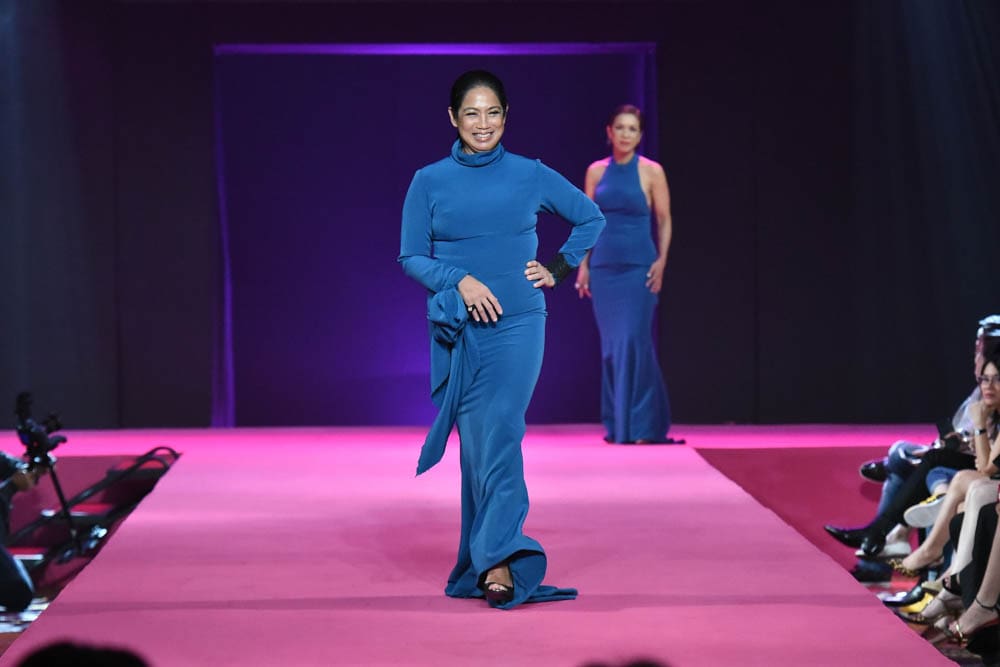 Rosanna Ocampo’s premier line ORO showcased deep green gowns specially created for her muses at the Fashion Can Serve Gala held at the Raffles Hotel Makati. Style maven Crickette Tantoco walked down the runway with her sister breast cancer survivor Frances Yu along with restaurateurs and sisters-in-law Margarita and Malou Fores, both of whom are Breast Cancer Survivors.