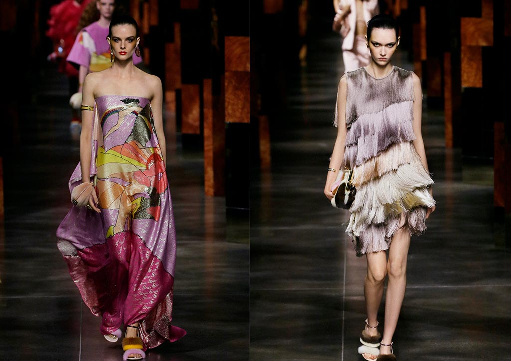 For his sophomore RTW show at the Italian luxury house, Kim Jones marries joyful irreverence with his vision for its future. It is a present-time perspective on disco-age glamour, placing a spotlight on the diverse and powerful femininity that underscores the label. The starting point is a logo hand-sketched by fashion illustrator Antonio Lopez, which was unearthed from the Fendi archives.