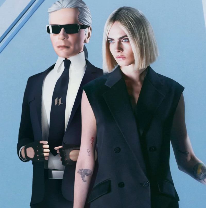 “I’m honored to be able to partner with the only fashion house that carries Karl’s name and get the chance to make a personal contribution to his legacy,” Delevingne says about the collaboration. “It’s been great to share my ideas with the creative team, have a say in the designs, and just have some fun in the process.”