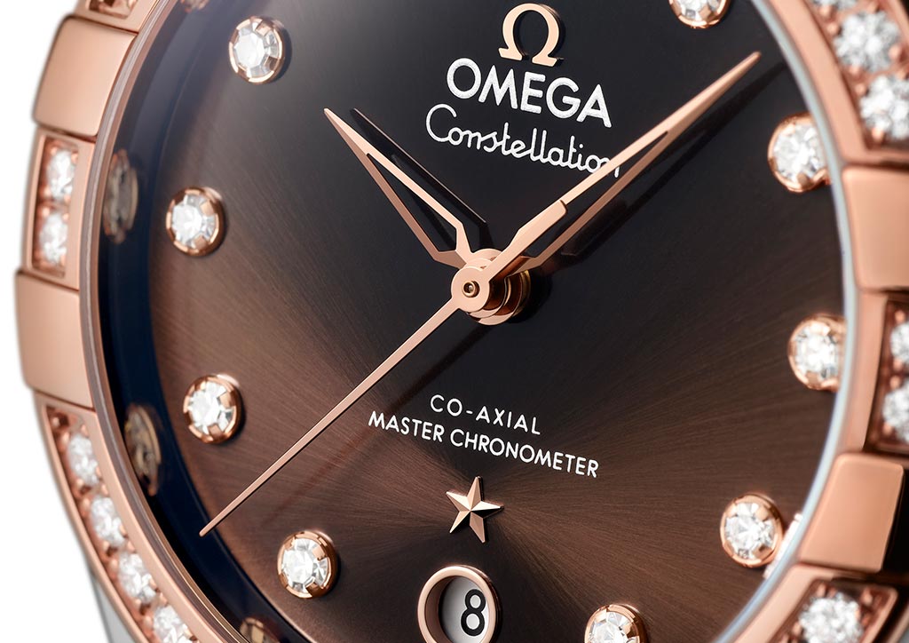 On each new edition, the Omega logo, Constellation star and indexes are in 18K white gold, 18K yellow gold or 18K Sedna gold (depending on the model) to ensure all applied elements match the color of the case material.
