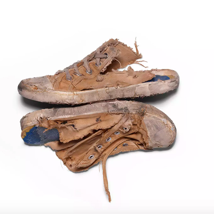 On the Business of Fashion Instagram page, GQ France editor Pam Boy said this was creative director Demna Gvasalia’s way of turning the essence of luxury upside down: “Demna will make people who can afford luxury items purchase ‘pre-worn’ looking sneakers for 1450€…once again he is making fun of people who will indeed spend a minimum wage on items that they might deem disposable, and which are seemingly worthless.”
