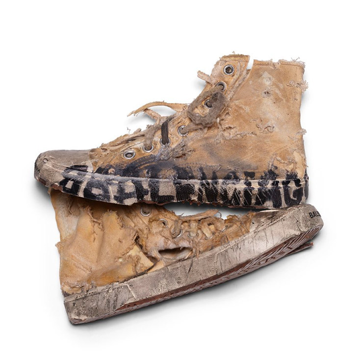 On the Business of Fashion Instagram page, GQ France editor Pam Boy said this was creative director Demna Gvasalia’s way of turning the essence of luxury upside down: “Demna will make people who can afford luxury items purchase ‘pre-worn’ looking sneakers for 1450€…once again he is making fun of people who will indeed spend a minimum wage on items that they might deem disposable, and which are seemingly worthless.”
