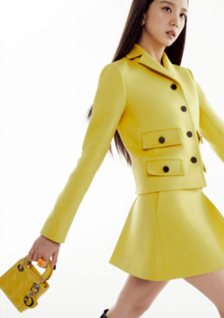 Jisoo was seen carrying around this mustard-colored number in Dior’s latest campaign. The piece, which was unveiled during the Summer 2022 fashion show, is crafted in yellow lambskin with signature Cannage topstitching, and embellished with a ‘D.I.O.R.’ charm.