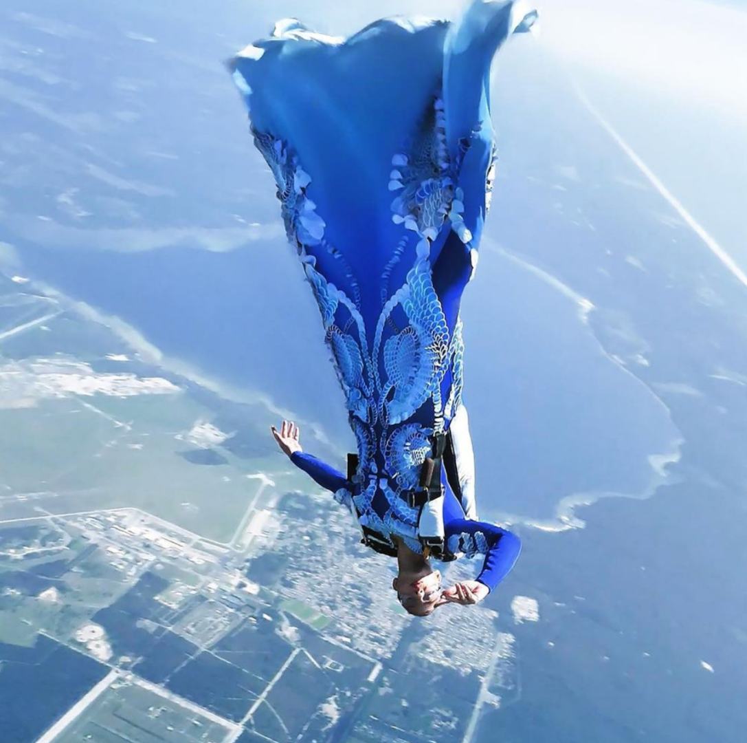 Van Herpen is known for having tiered definitions behind everything she presents. With that, Kiger’s ensemble for the dive was calculated, tried, and tested. She tells Vogue that it was a challenge to “merge the delicacy of the craftsmanship with the extreme durability that is needed within the jump.”