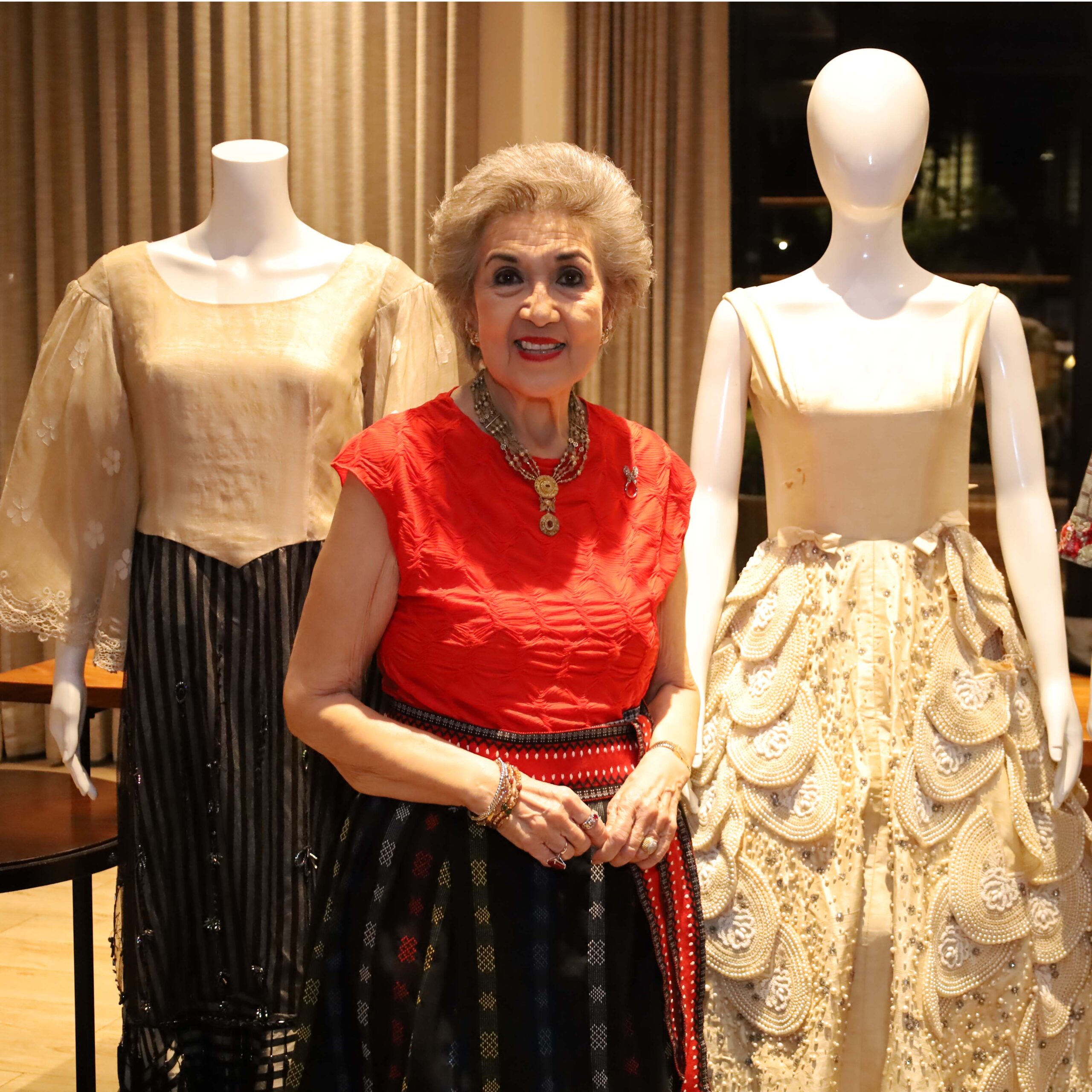 “It was my mother who shaped me and my preferences in fashion. She would keep her clothes in baúls [trunks]. She never discarded them,” she elaborates during a press gathering. “When we started to look through her collection, we discovered all these beautiful gowns and dresses. That’s really where it all began. At some point, people were borrowing my gowns for their books, shows, and exhibits.”