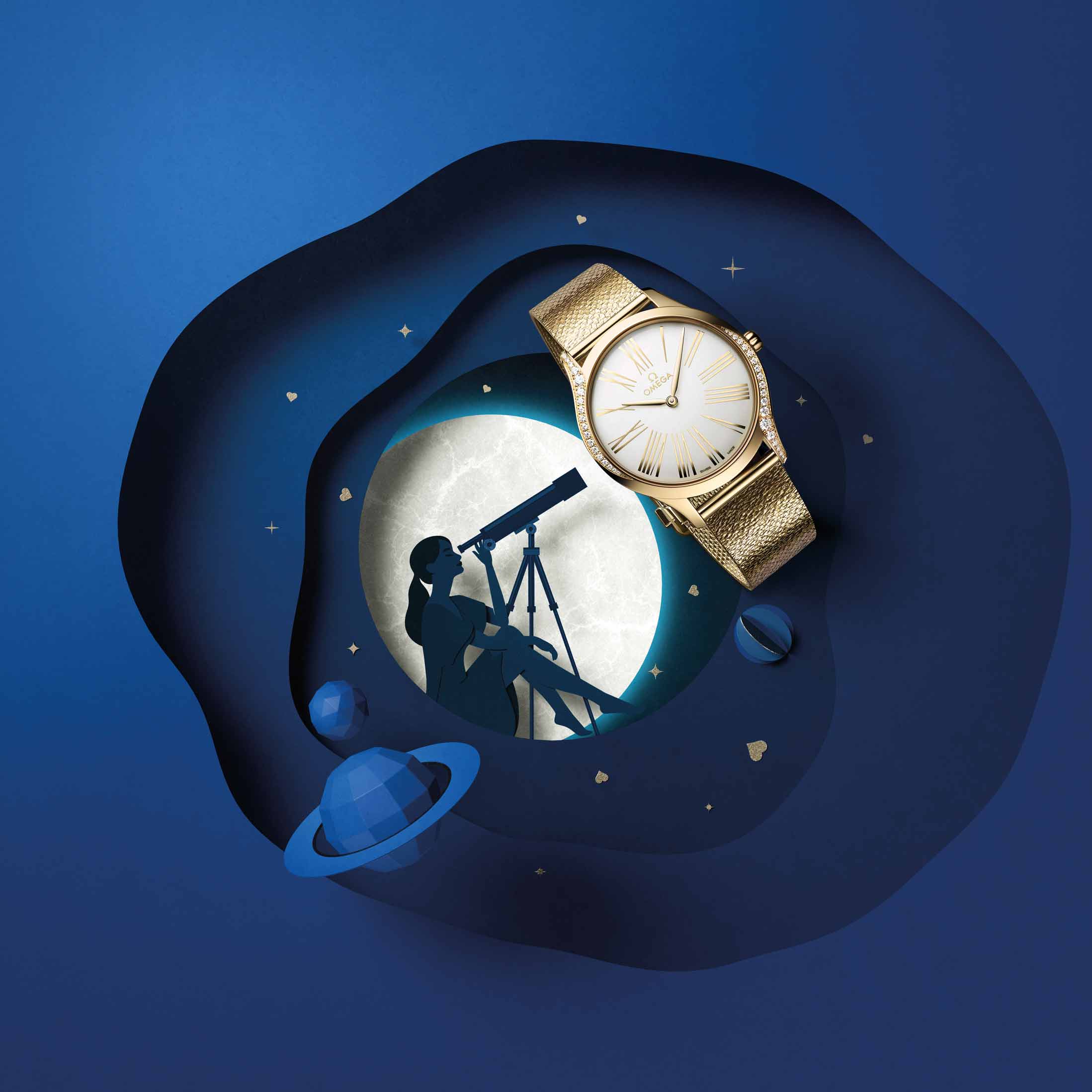 For this year’s season of love, Omega wants you to train your eyes upward. The watch brand just released its Valentine’s collection made up of its latest iterations of the Constellation and the De Ville Trésor. Both are inspired by a lover’s promise, of giving the moon to his or her beloved.