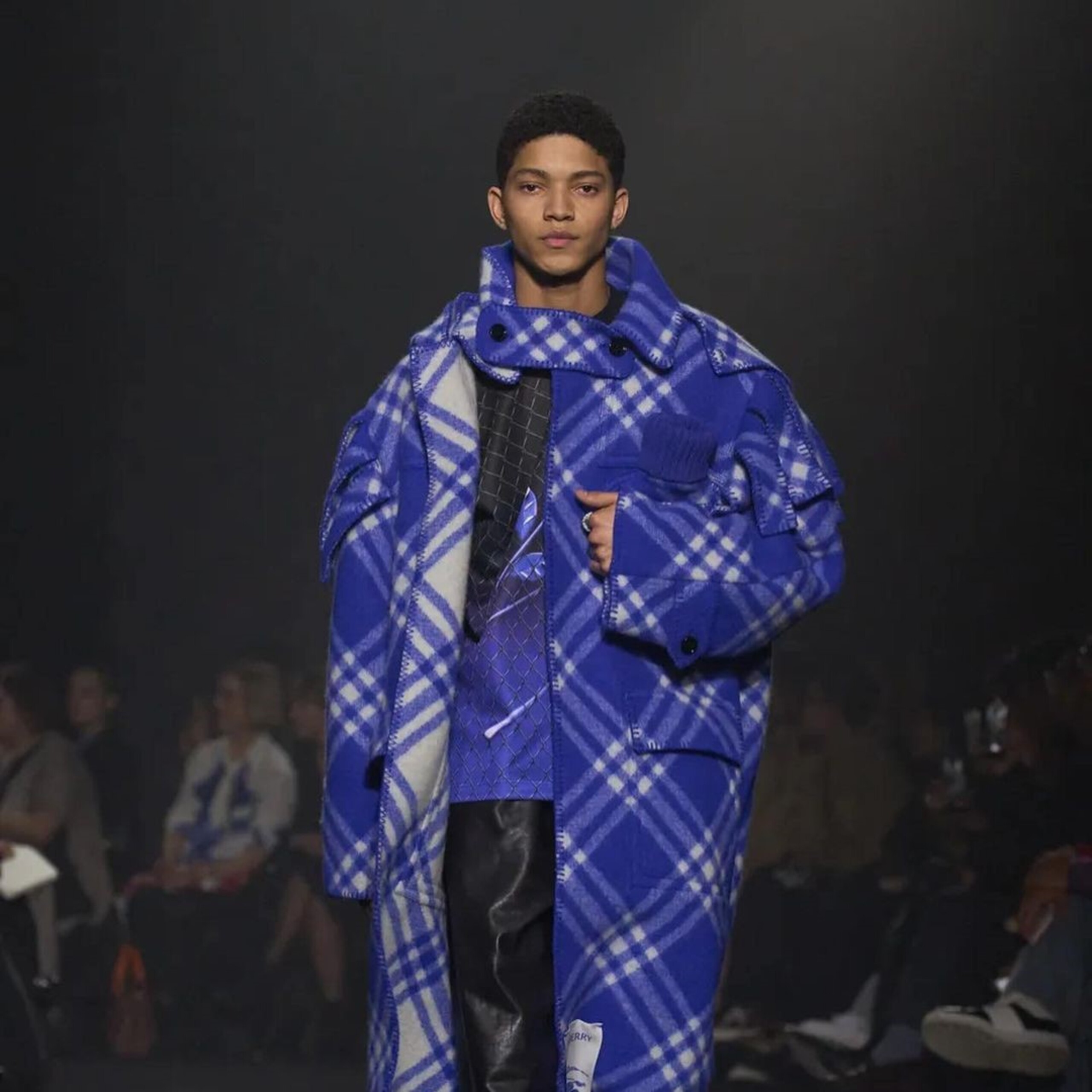 Guests were seated on chairs covered in plush Burberry blankets with the brand’s recognizable checkered print, and offered hot water bottles to combat the evening’s chilly weather. During the show, they were treated to an exhibition of outfits that paid homage to Burberry’s quintessentially British roots and sensibilities—but not without adding a few innovative twists.