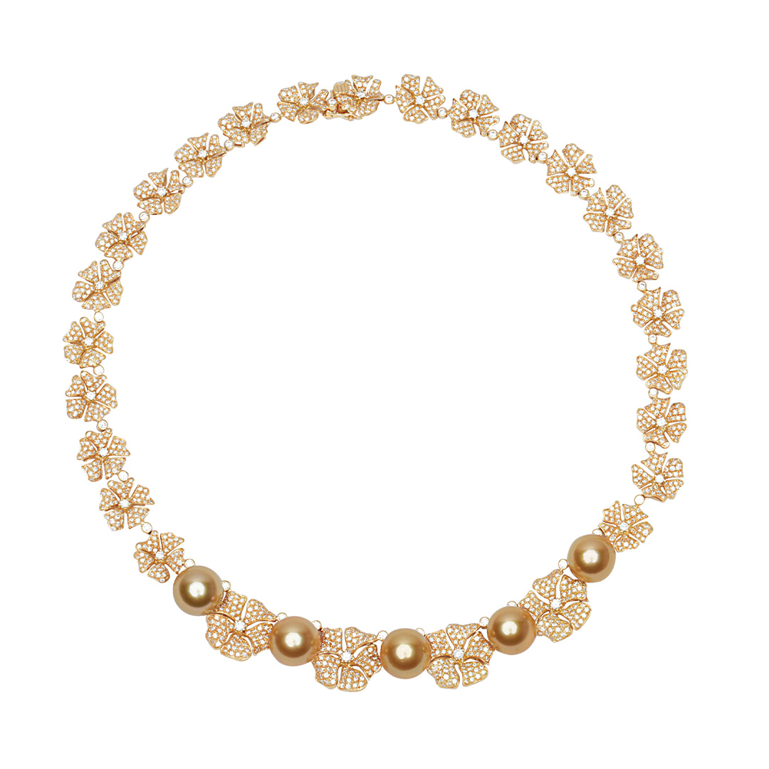 Pearl necklaces are creations that can be passed down from generation to generation. Laden with diamonds that add a pop of sparkle, each opulent creation is impactful and intricately handcrafted. Contours of lustrous gold and diamonds define the dynamic Cruise pieces. Inspired by the legendary vessels of ages past, Jewelmer’s Cruise Collection embodies the thrill and ease of exploration, evoking the beauty of working with the currents.