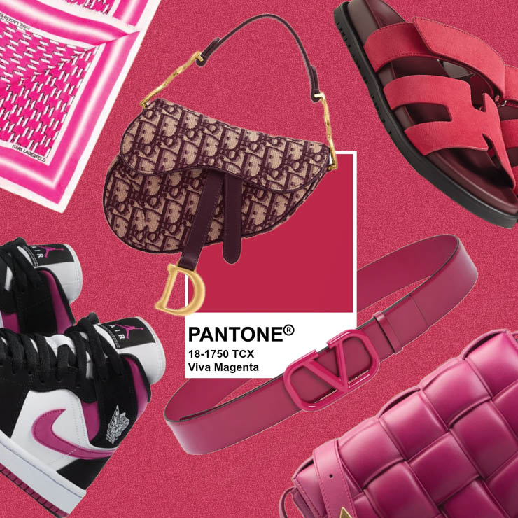 While Viva Magenta is lively and on-theme with the holiday season, we’ve rounded up our fashion-forward picks you can already acquire in the shade. See the hue in Hermes Chypre Sandals and Air Jordans to a Karl Lagerfeld Scarf and Botttega Veneta Cassette Bag. After all, it’s never too early to ride a trend.
