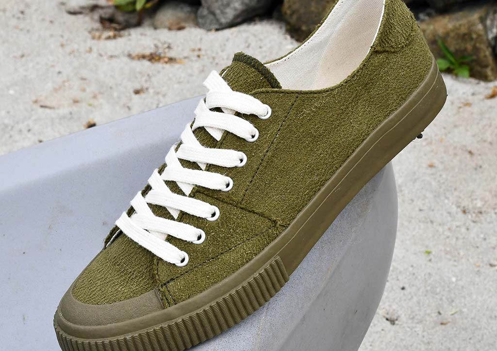 Pineapple and cotton fibers are water repellant, and woven by hand by the Kabanklan weavers of Negros. Insoles are made using 100 percent non-woven pineapple fabric, while outsoles are produced using Mindanao-farmed rubber. The soles are also mixed with pineapple cotton fibers discarded from the yarn spinning process.