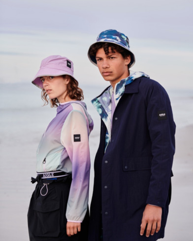 For wardrobe updates that provide more protection from rainfall, Aigle’s Cosmic Summer collection includes thicker materials that remain rain-proof. With its bright designs, you can wear these pieces with solid colored trousers for a fashion-forward contrast.
