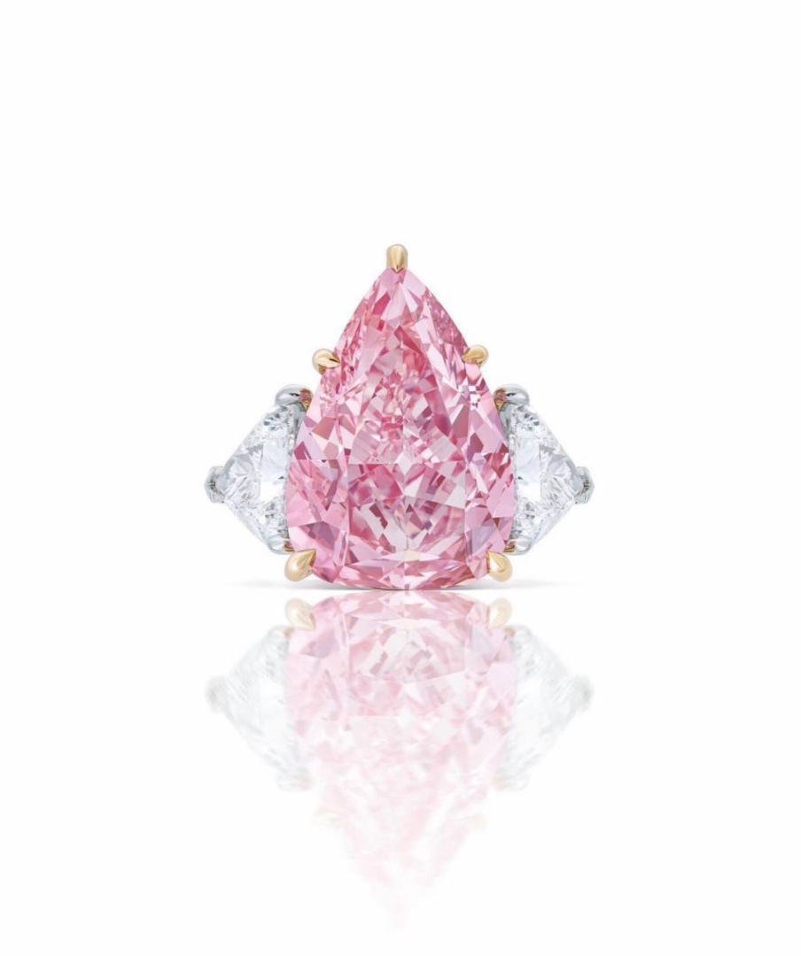Christie’s YouTube page shares that “the Fortune Pink is an exceptionally rare gemstone and is the largest fancy vivid pink pear-shaped diamond ever to be offered for sale at auction.” The auction house adds, “Weighing an auspicious 18.18 carats, the diamond’s weight literally translates to definite prosperity in Asia and is sure to garner interest from collectors across the globe.”