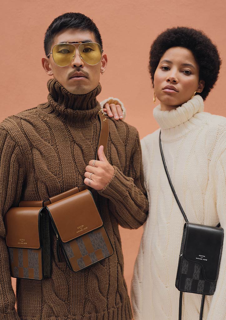 Designed in Ashya’s signature silhouettes, the gender-neutral, leather Ashya x Michael Kors bags will feature a custom print that incorporates the MK Signature logo print in a new pattern inspired by West African weaving techniques.