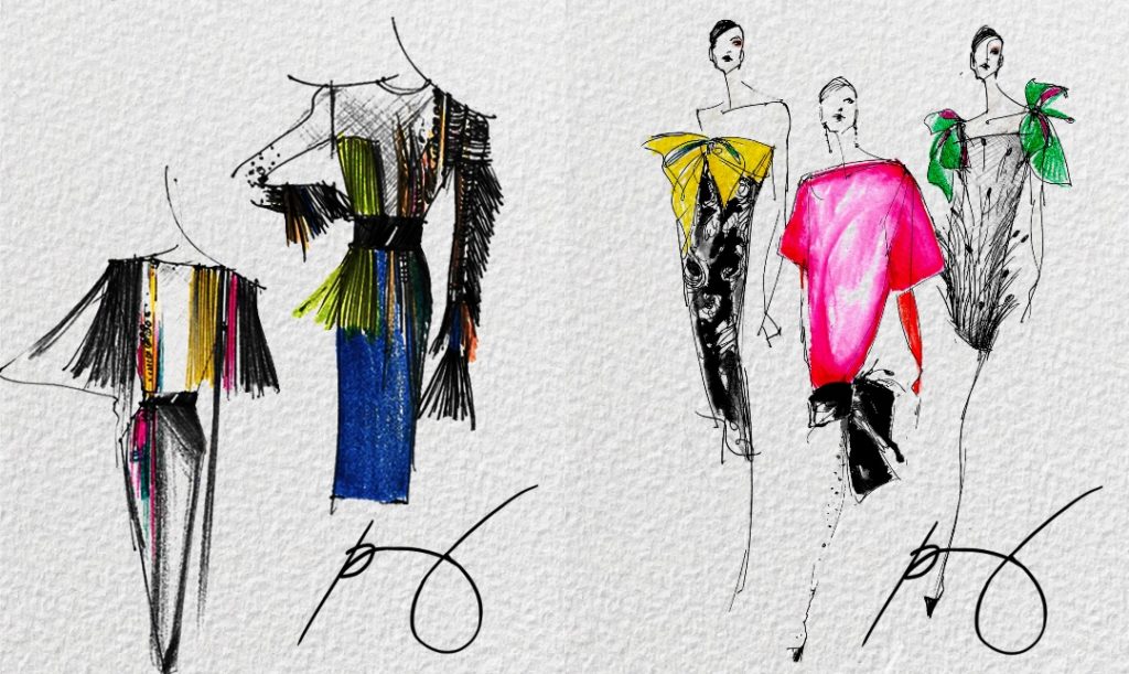 The design sketches above are from his archive in his first interview with the House of Dior under John Galliano in 2001. These depict his take on Les Années folles, the social and artistic collaborations in Paris in the 1920s. Since then, his journey shaped him into a well-rounded designer. Working for luxury and high-end street brands allowed him to “balance creativity with business,” he says. He learned to do technicalities like manufacturing, marketing, and sales. “Working in a fashion brand is all about teamwork,” he explains. Leadership, ensuring quality work, and using each person’s expertise—all these are crucial to “achieve growth for the brand you work with.”