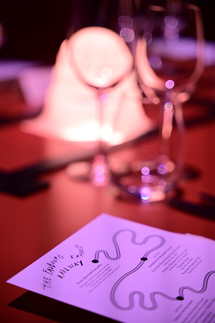 Each stop on the Faubourg Express is a meal on the menu; The guests are welcomed in a train station atmosphere, with luggage, train sounds, whistlings