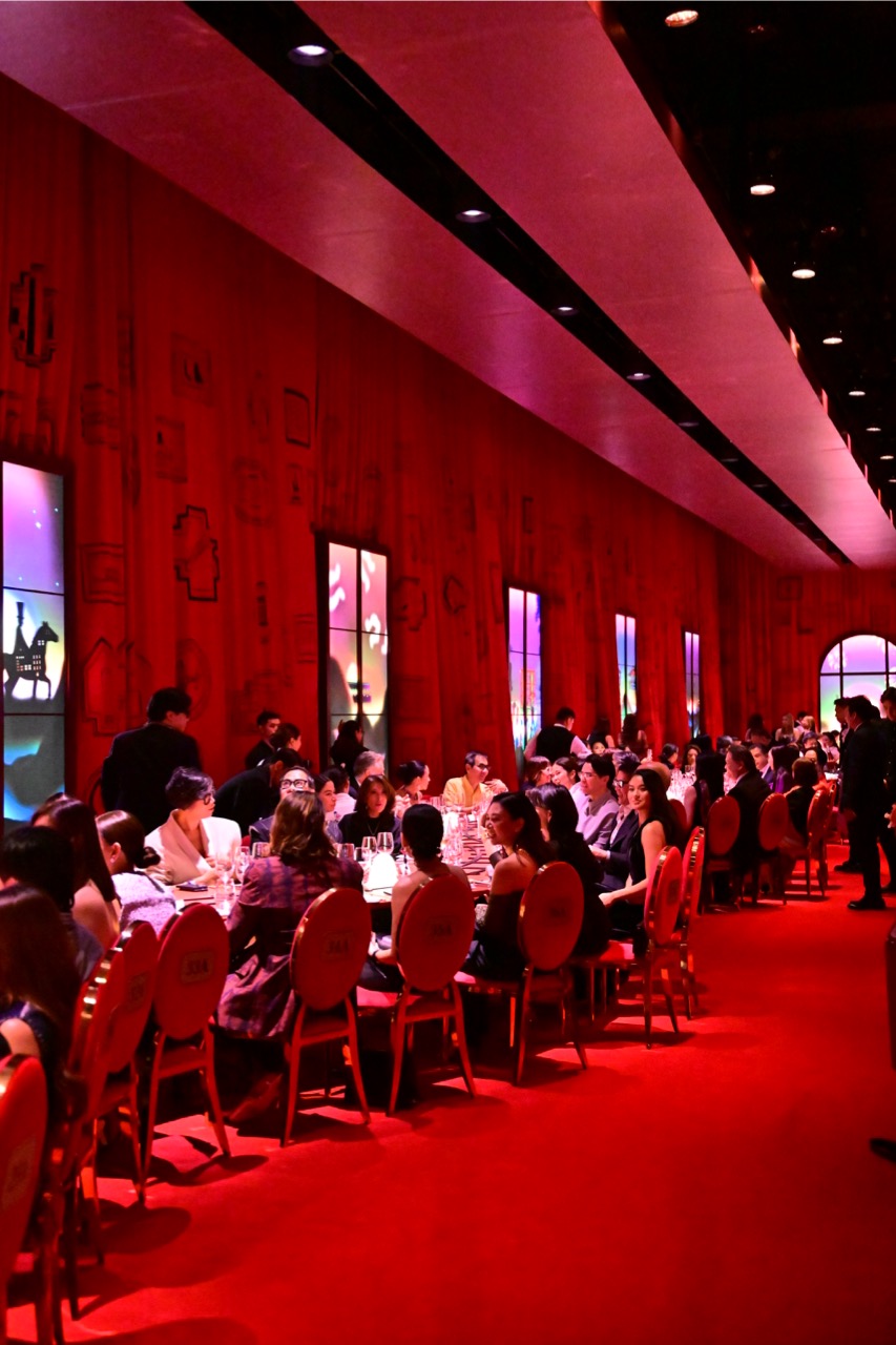 The evening’s journey seamlessly blended the romance of travel with the elegance of Hermès. Taking inspiration from the Maison’s emblematic address on 24, Rue du Faubourg Saint-Honoré in the heart of Paris, the flagship store was brought to life through a series of drawings that were hand-painted onto the beautiful red curtains lining the venue. These referenced landscapes, travel elements, and other design details that paid homage to Hermès’ heritage and its history of luxury and craftsmanship.