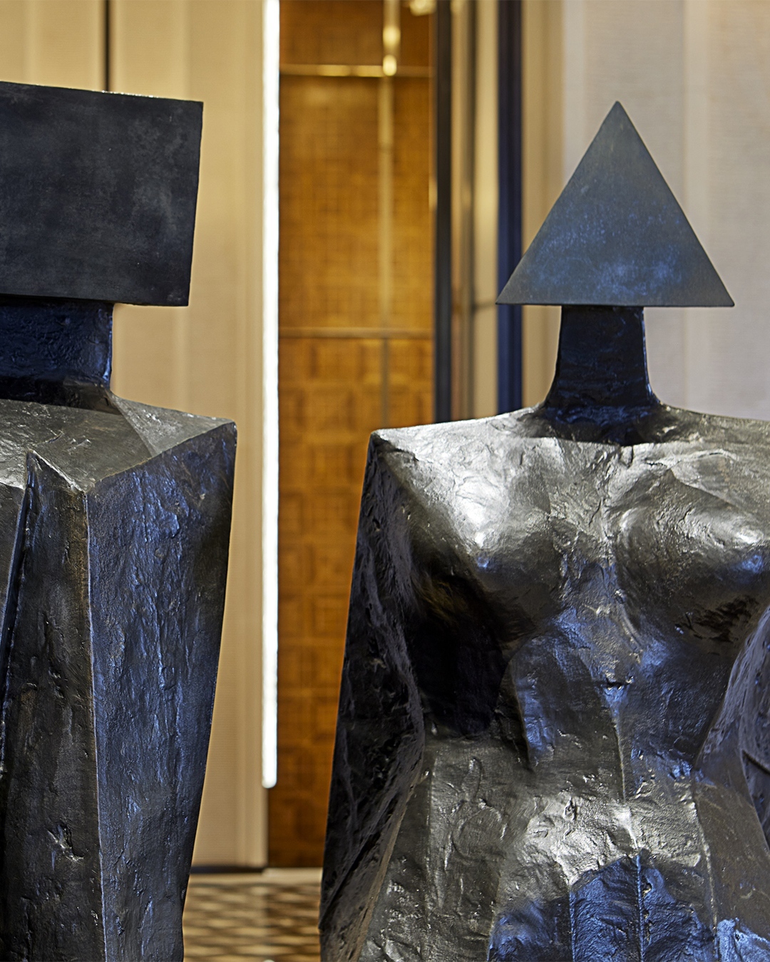 Upon entering the lobby, guests are greeted by another bronze sculpture, “Pair of Walking Figures – Jubilee,” by British sculptor Lynn Chadwick. Abstract paintings by American artist Joe Bradley are located in the lift lobby while colorful depictions of Hong Kong by New York-based, Chinese artist William Lo are found in every guest room.