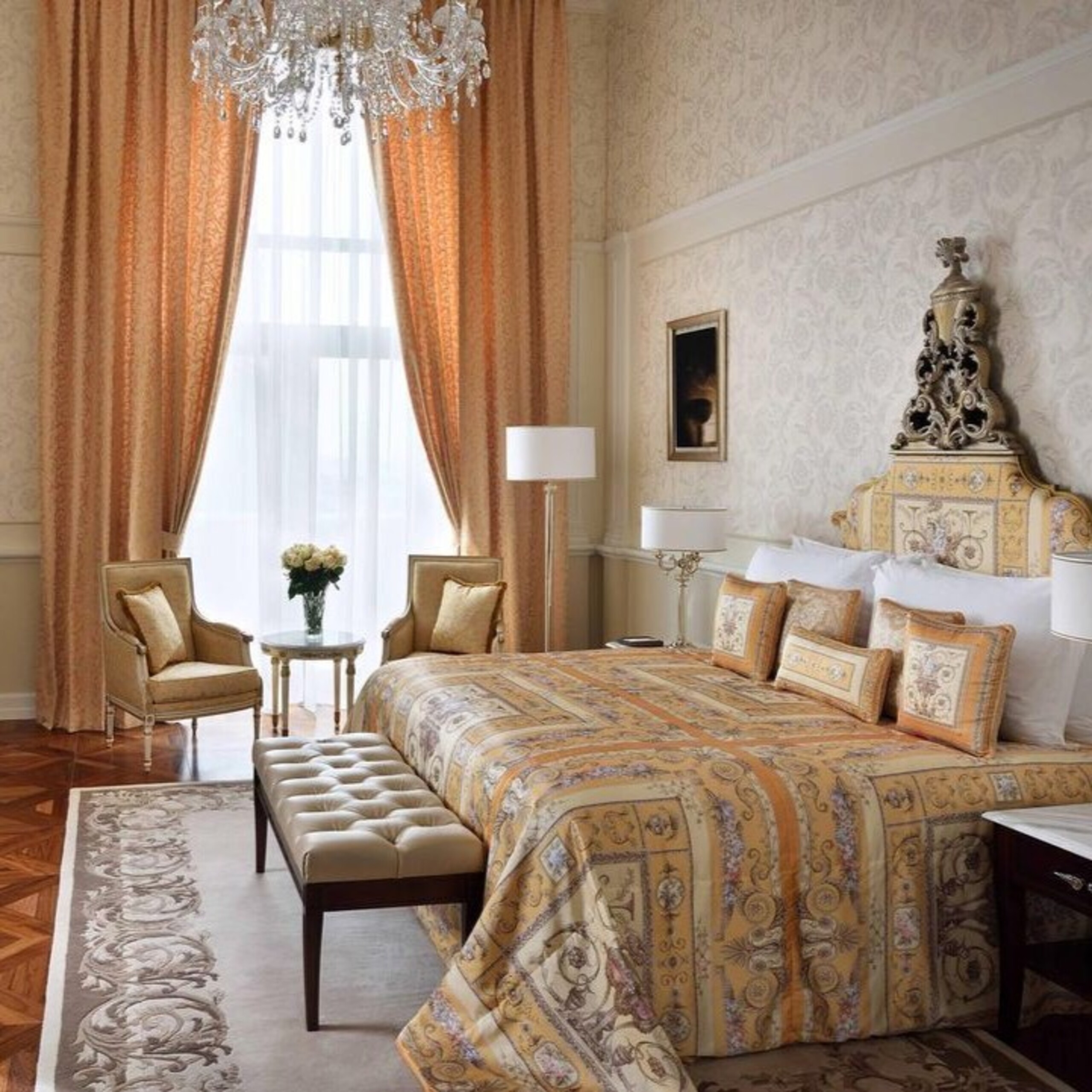 The hotel boasts Neoclassical architecture that makes it look like a 16th century Italian palace. It features Versace’s iconic motifs (such as the ‘Pietra di Fiume’ Medusa head), majestic high ceilings, perfectly manicured gardens, and artful Italian furnishings that embody the fashion house’s aesthetic sensibilities.