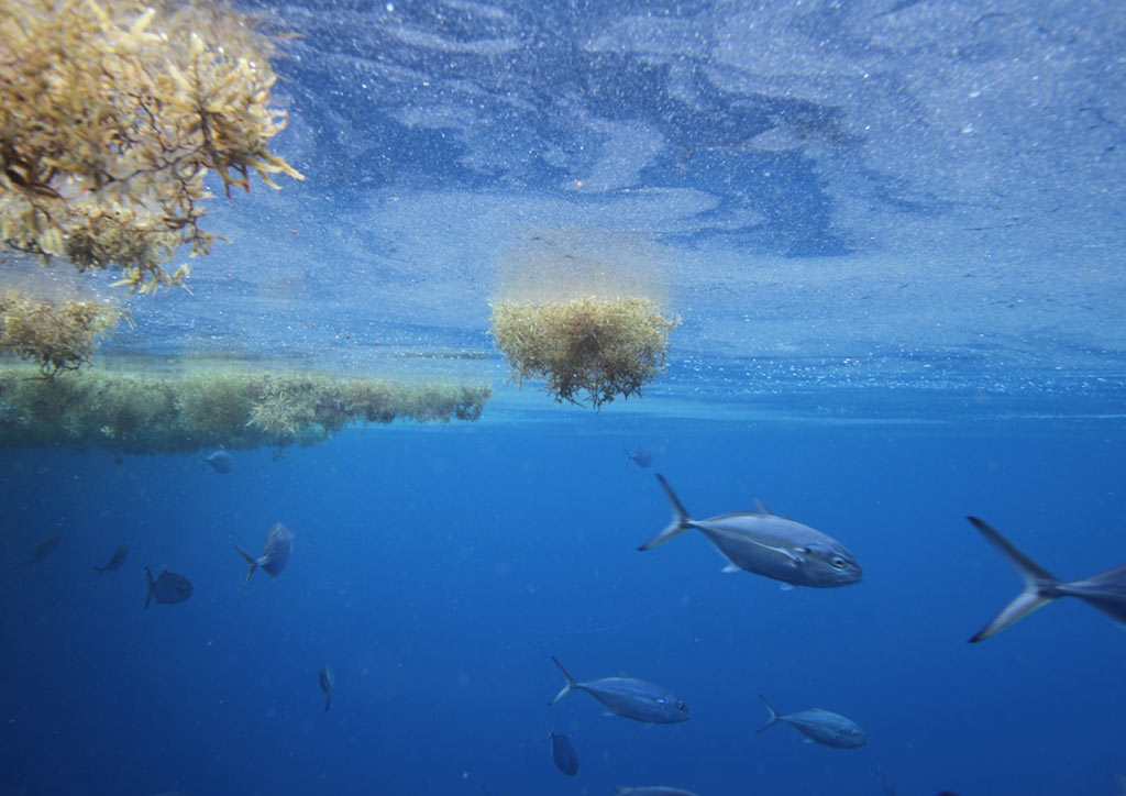 The Sargassum is home to species that have adapted to this floating platform such as endangered eels, shrimp and crab. It also hosts white marlin, porbeagle shark and dolphinfish, as well as humpback whales and tuna, and birds looking for food as they migrate.