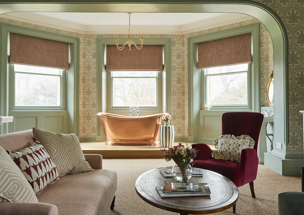 The Retreat spans three floors, each with a theme, and rooms named after champion racehorses, famous jockeys, local points of interest, or nods to British country pursuits such as shooting, fishing, hunting and racing. The three Signature Suites, The Sutton, Bushby Bacon (a family suite), and the Percey Shelley, are named after the hotel’s previous inhabitants.