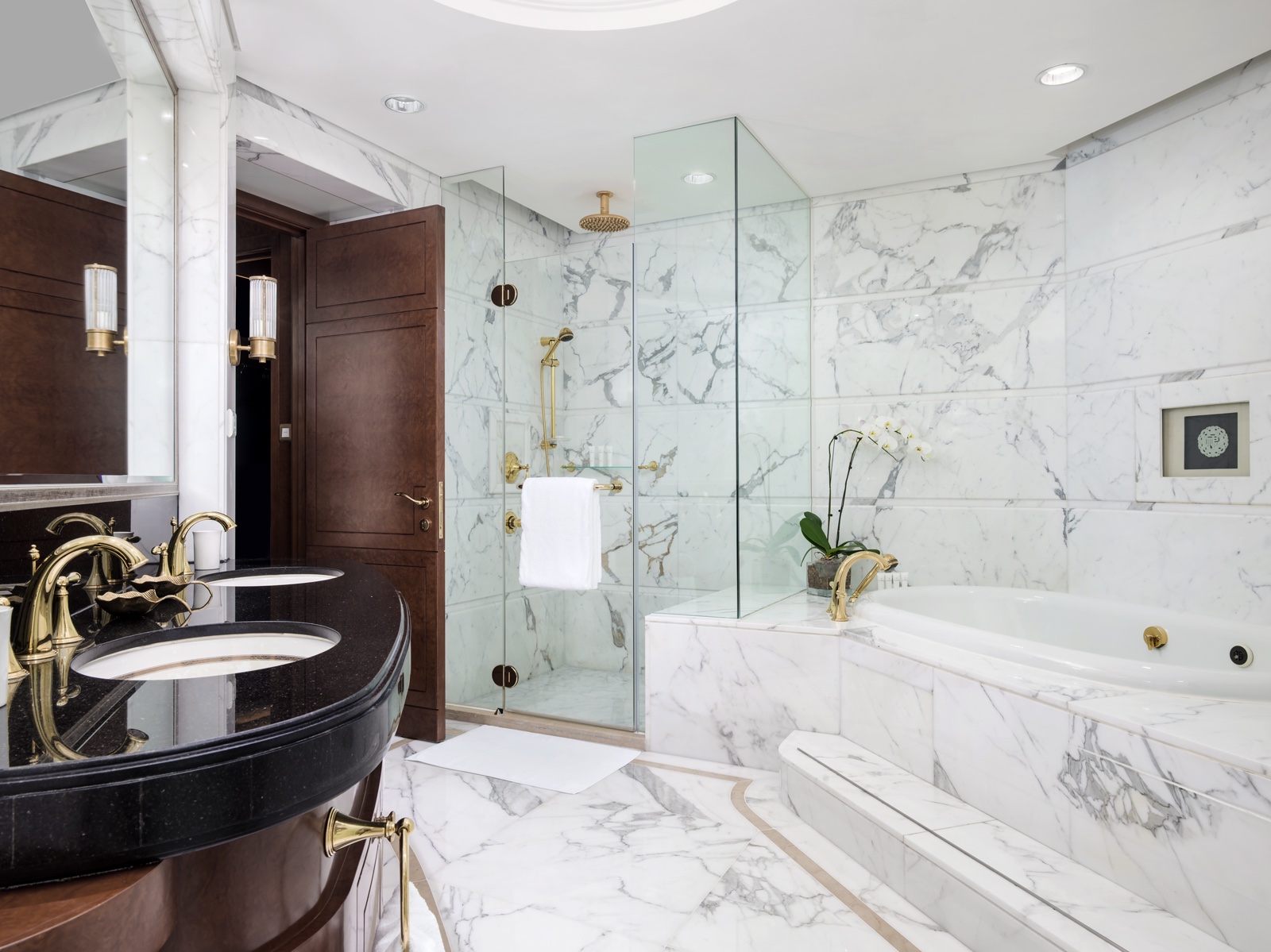 From top to bottom, left to right: Chairman Suite Bathroom, Chairman Suite Bedroom, Chairman Suite; Club Lounge on the 36th Floor and Relaxation Area at the Club Lounge; Chuan Spa and Health Club Reception and Rooftop Swimming Pool